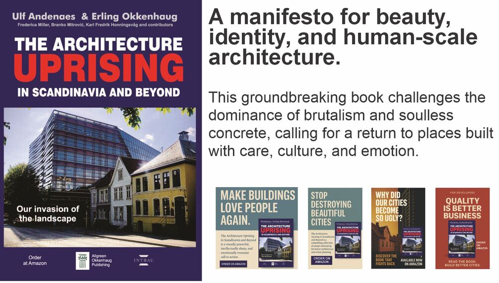 Editor Erling Okkenhaug, long-time activist and founder of the environmental and community focused Allgrønn (Evergreen) network, joins forces with accomplished international journalist Ulf Andenaes and a group of committed voices from across Scandinavia to present a multi-faceted critique of the current architectural paradigm. Drawing on sources as diverse as Rachel Carson, Jane Jacobs, Gandhi, Jan Gehl, Hans Asplund , Christopher Alexander and Ivan Illich, the book presents a philosophical, environmental, and aesthetic case against alienating architecture, in favour of harmony, beauty and the environment.